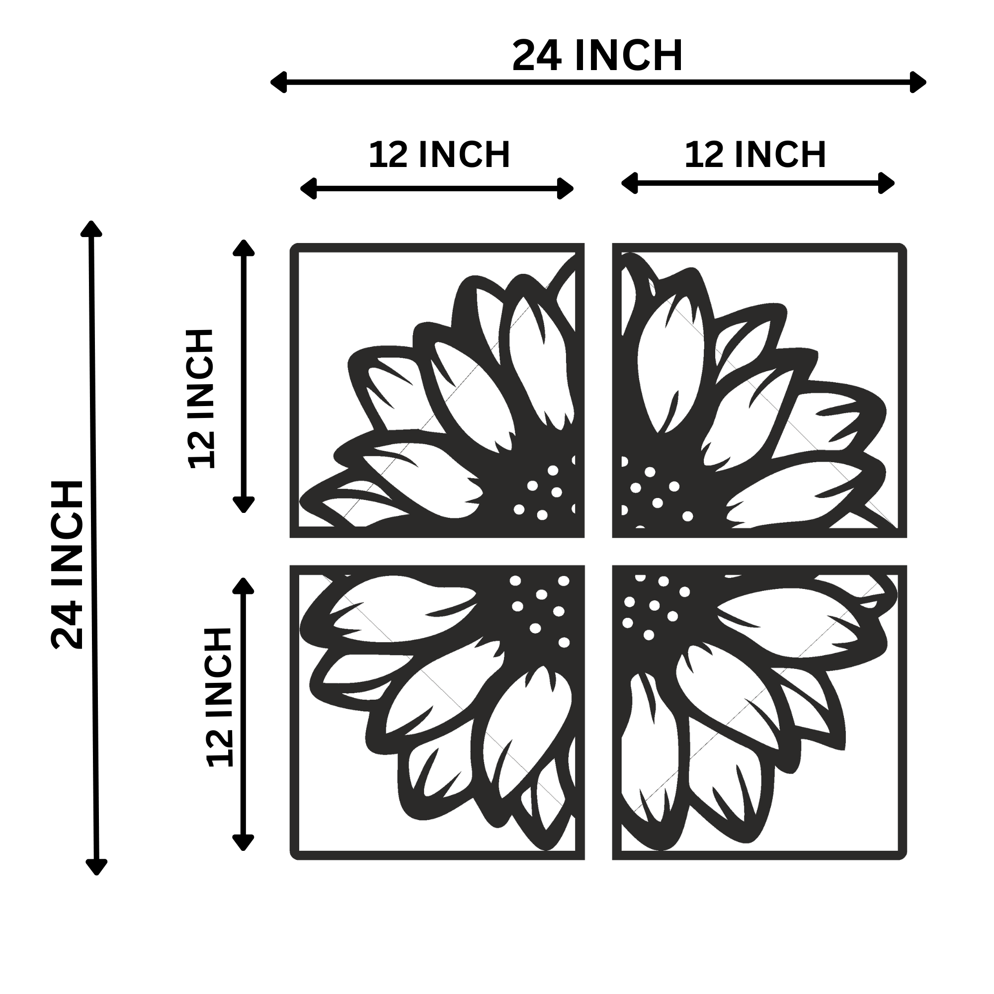 This sunflower geometric MDF wall art is created for homeowners who want their walls to express warmth, balance, and modern elegance without visual clutter. Inspired by the natural symmetry of sunflower petals, this four-panel design brings harmony and structure to contemporary interiors. The clean black silhouette contrasts beautifully against light-colored walls, instantly drawing the eye without overpowering the space.