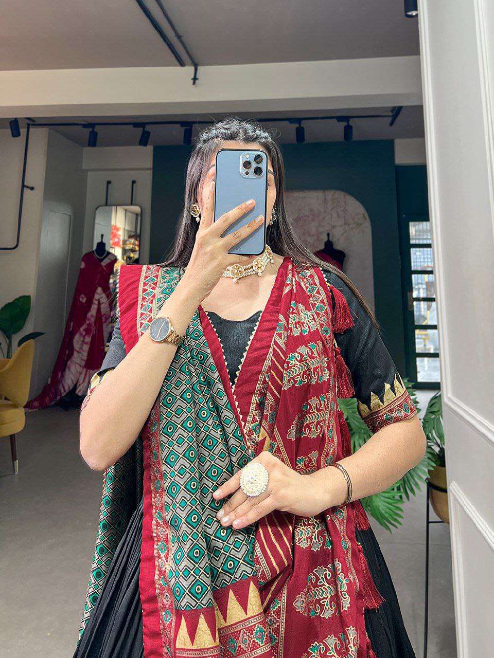 Be the first to review “Women’s Stitched Ethnic Lehenga Choli with Zari Border and Contrast Dupatta”